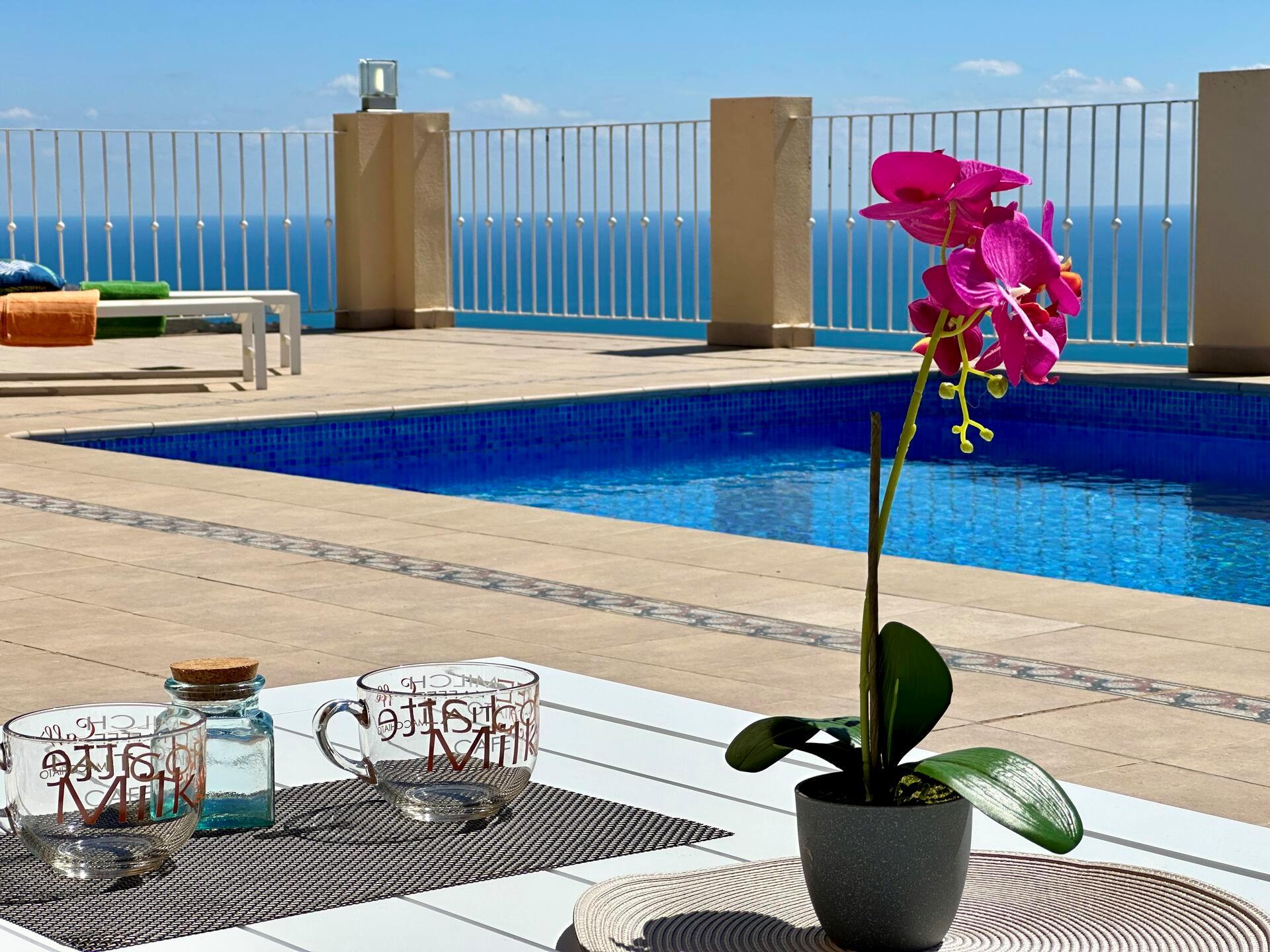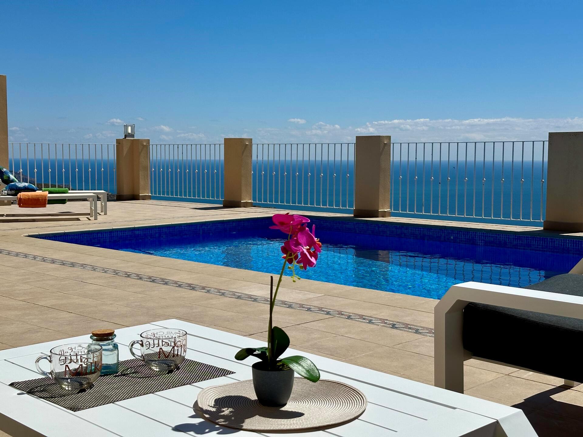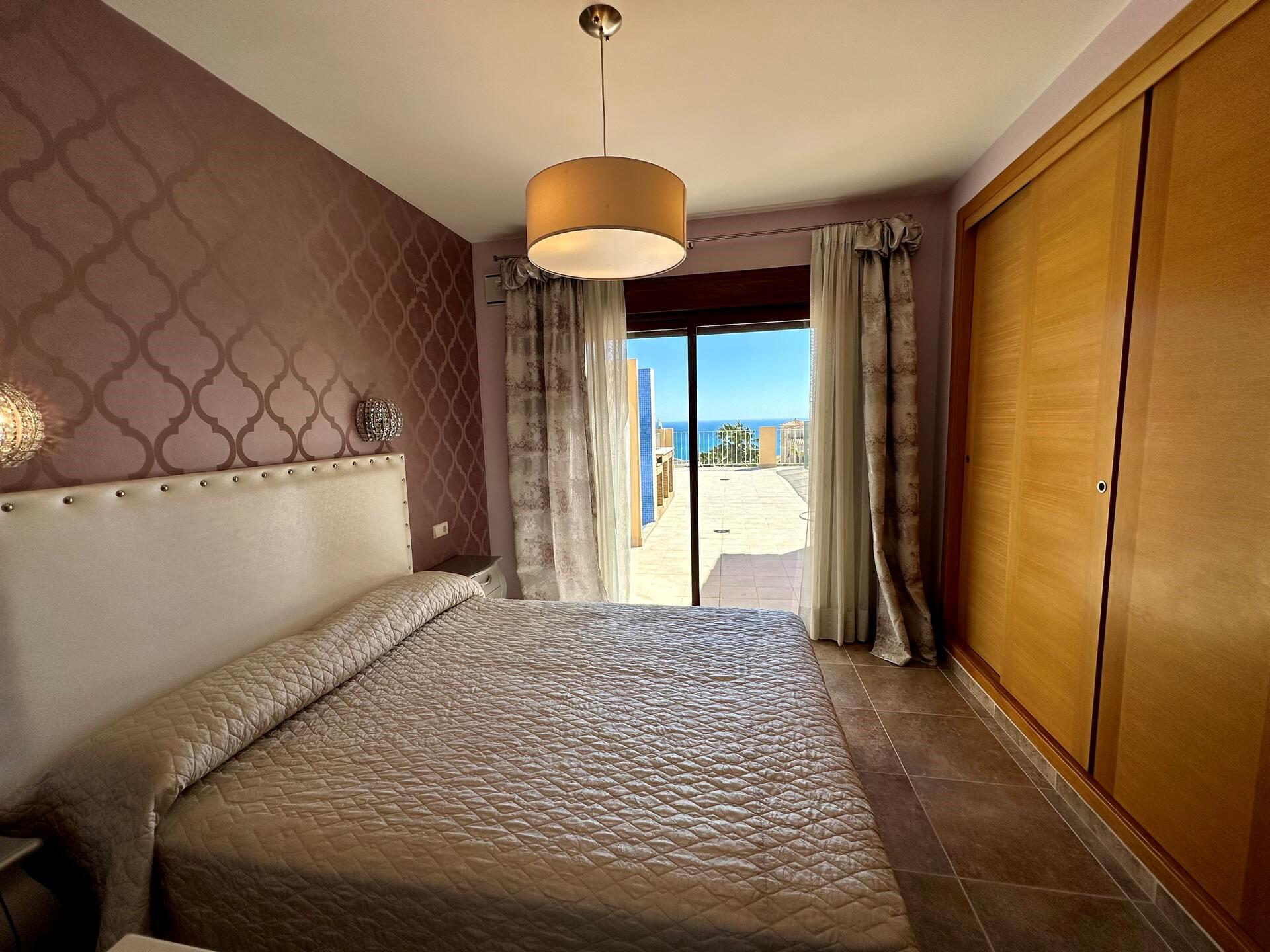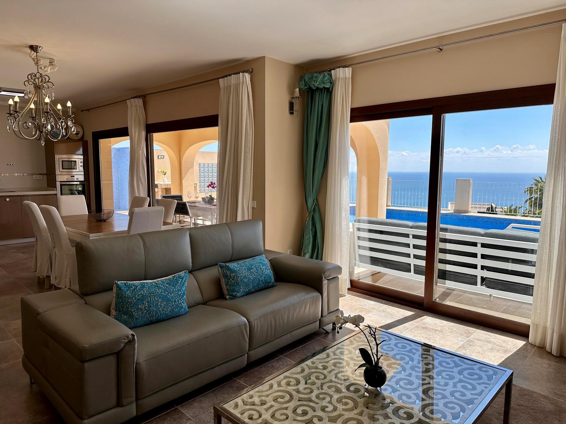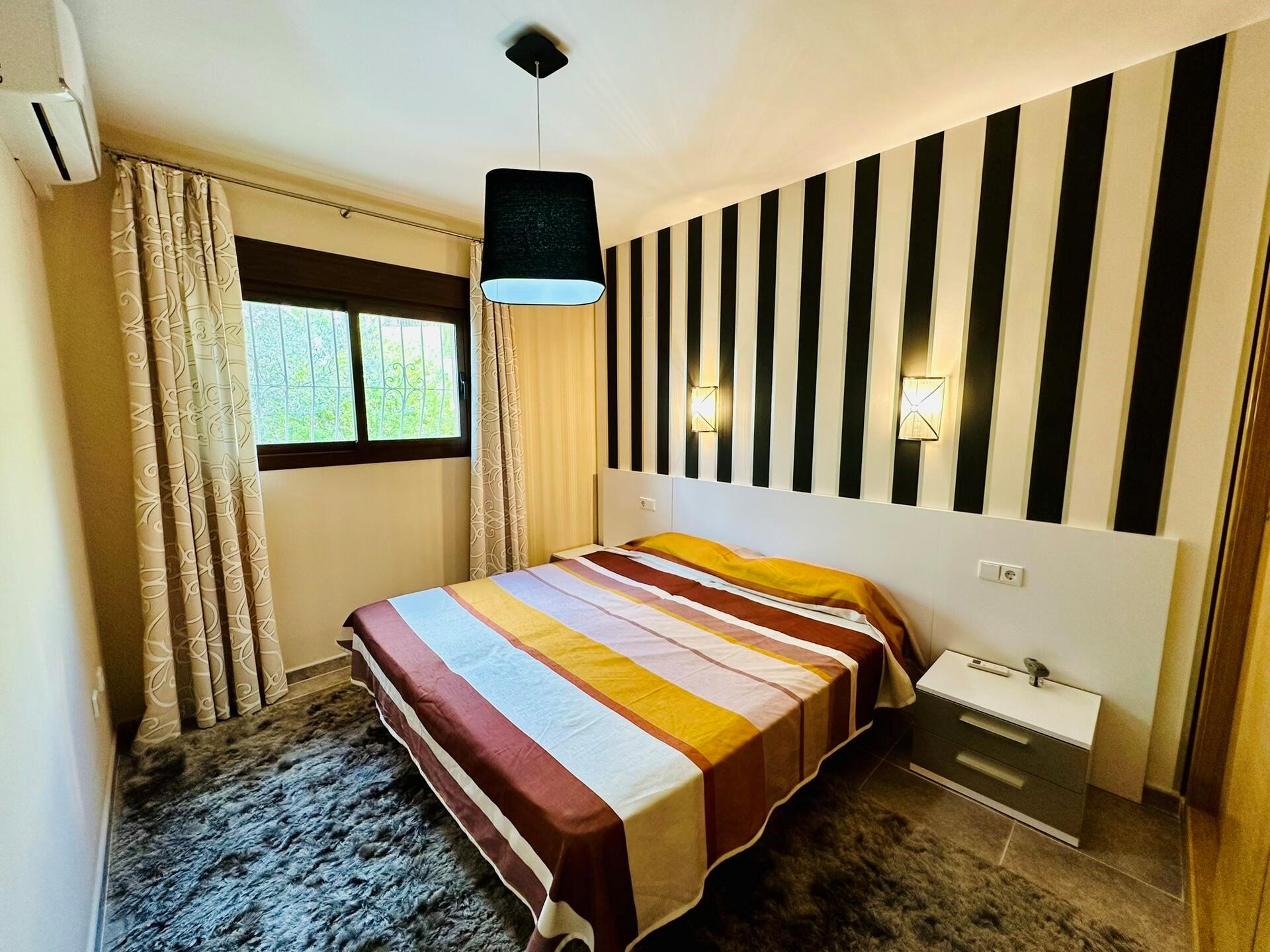 Large and comfortable villa with private pool in Benitachell, Costa Blanca, Spain for 6 persons. The house has 3 bedrooms and 2 bathrooms. The accommodation offers privacy, a lawned garden with trees, a beautiful pool, wonderful views of the sea and stunning views of the mountains. Its comfort and the proximity to the beach make this a fine villa to spend your holidays in Spain with family or friends.